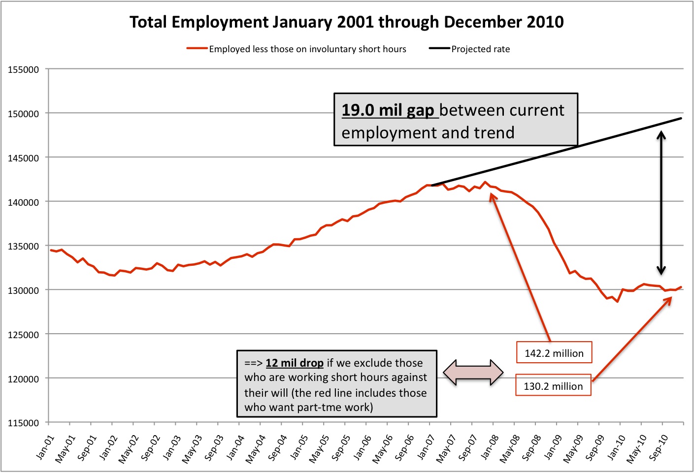 The second eliminates those who are employed but on involuntary short hours. That’s a measure of the human cost — focused on that narrower group of employed takes cognizance that not only have many lost their jobs in the recession, but many have also been put on short hours.